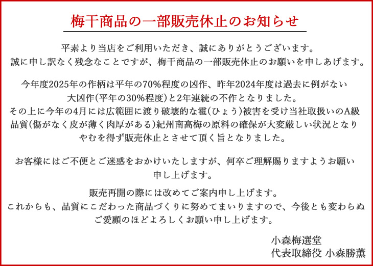 紀州梅の通販なら、梅の専門店【小森梅選堂】へ